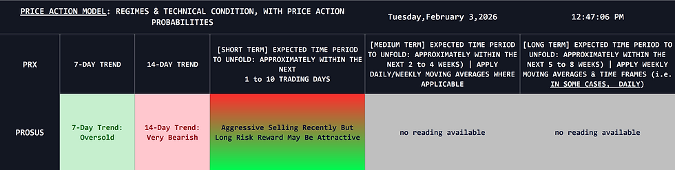 The CURRENT TECHNICAL POSITION and a PRICE ACTION PROBABILITY for multiple time frames.