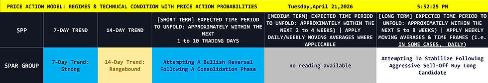 Updated Price Action Model Reading. See The 5 to 8 Week Time Frame.